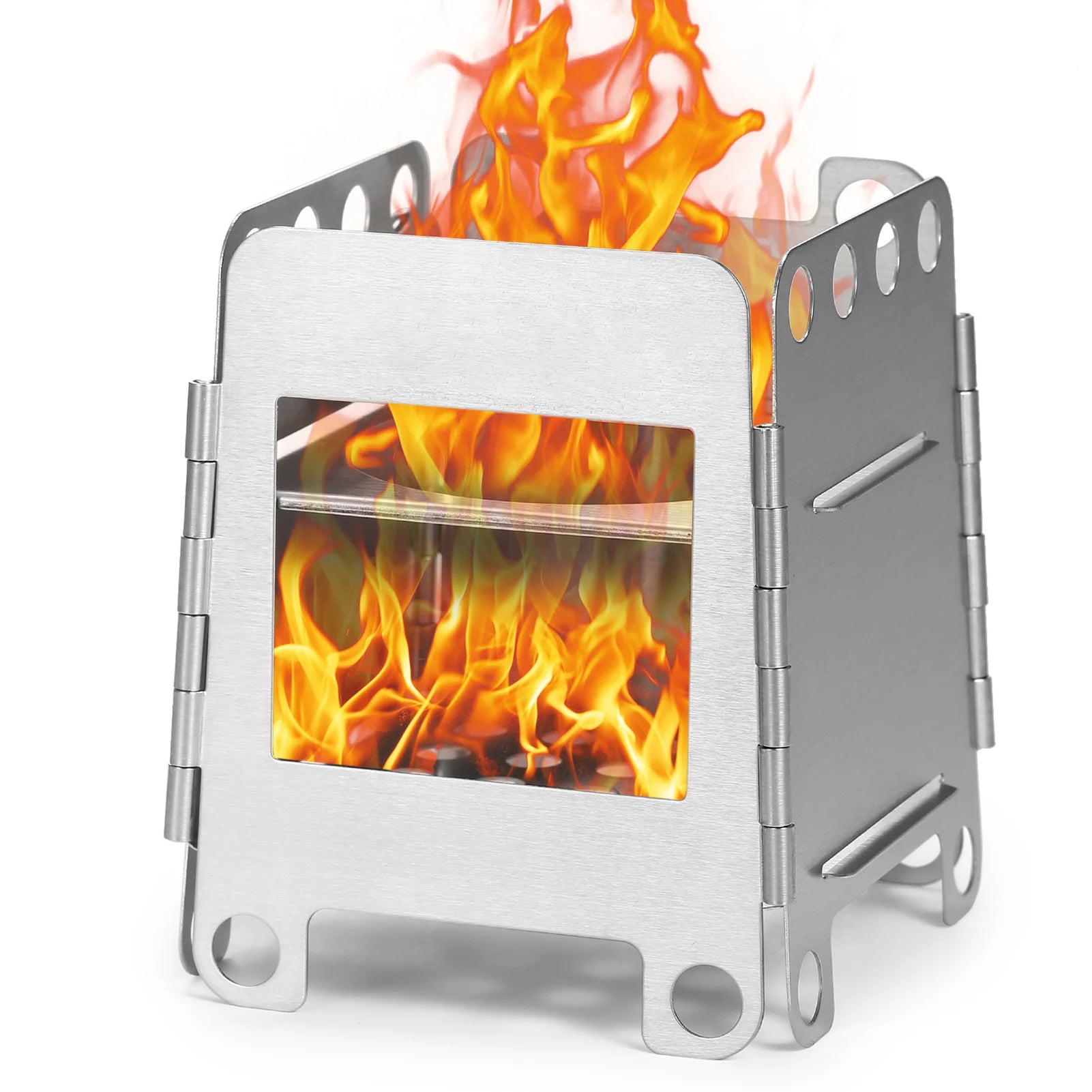 Portable Stainless Steel Lightweight Folding Wood Stove Stove Outdoor Camping Cooking Picnic Backpacking Stove Mini Stove